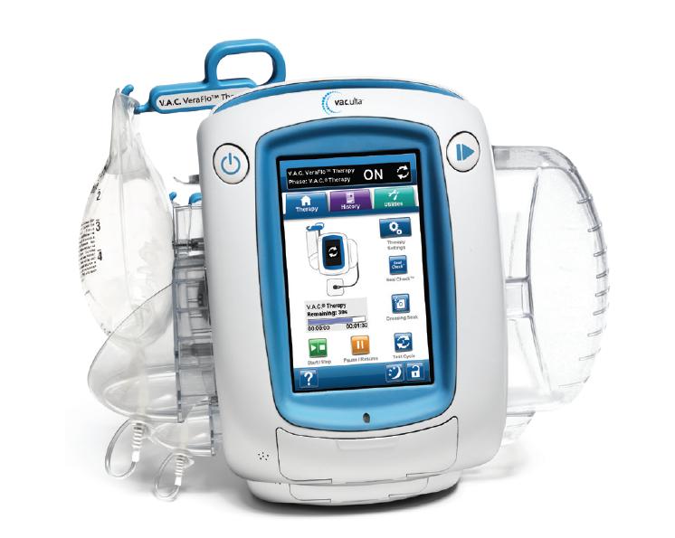 Si le voyant est orange fixe, il y a obstruction. Vous devrez, dans la plupart des cas, recommencer le processus. Si la compresse est saturée, cela veut dire que les exsudats sont remontés jusqu’à la pompe. Le pansement est donc à refaire.